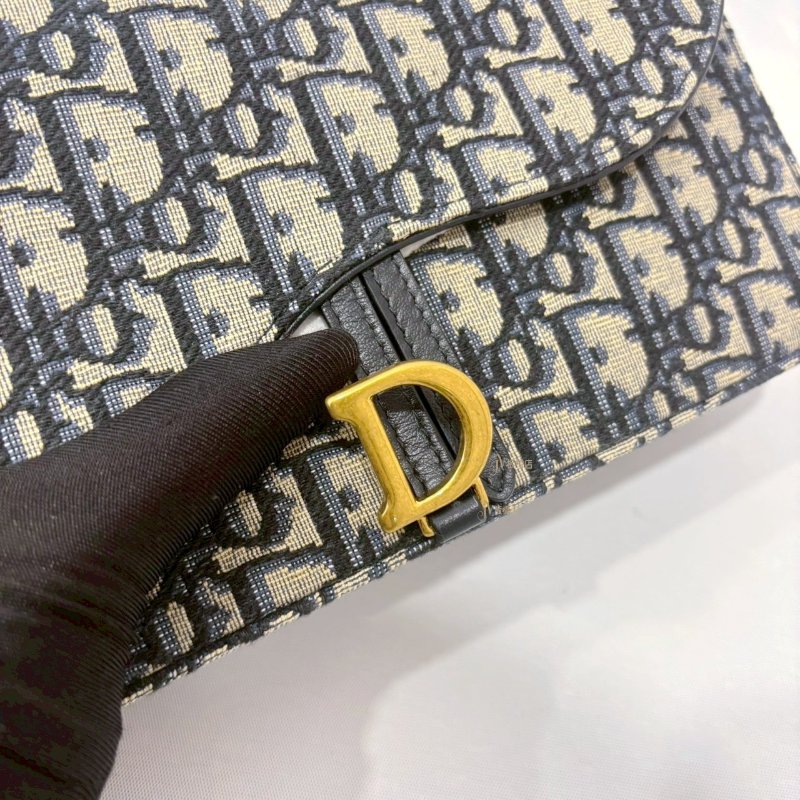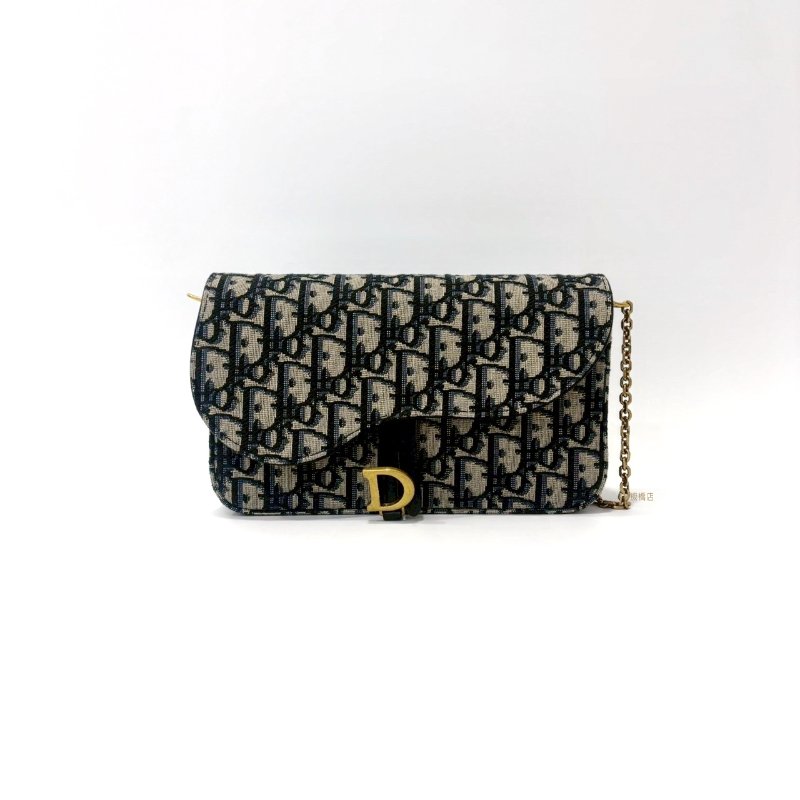 DIOR Saddle 中型藍色Dior Oblique緹花WOC鍊包-1