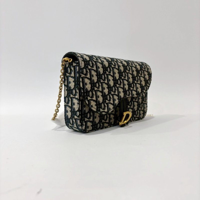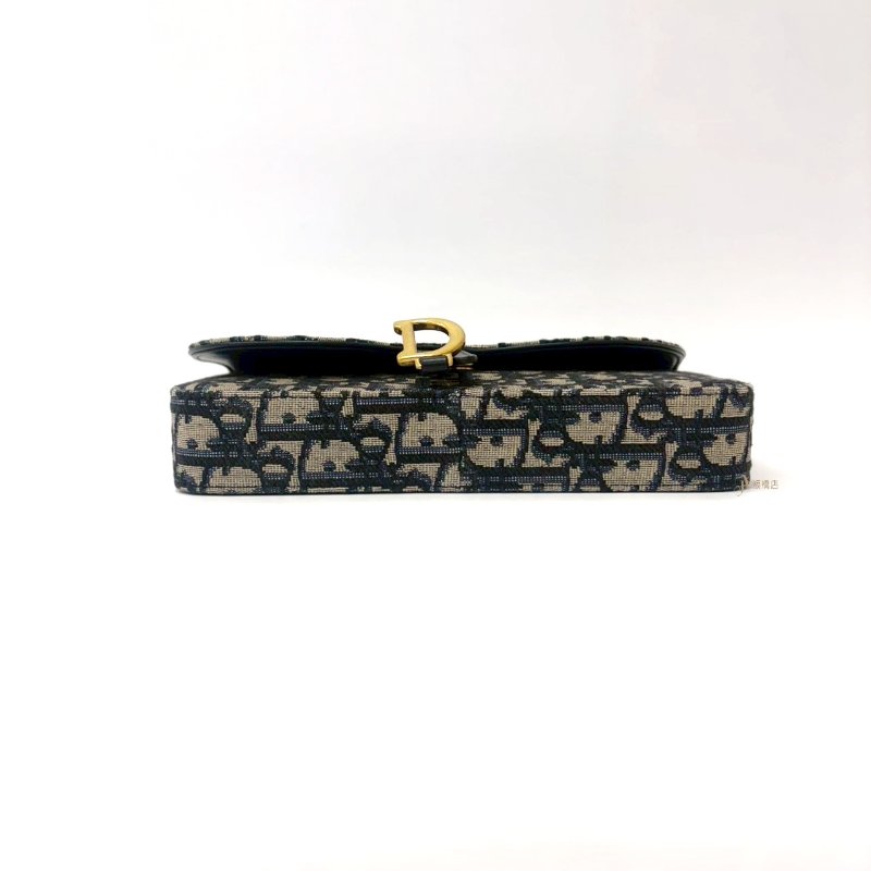 DIOR Saddle 中型藍色Dior Oblique緹花WOC鍊包