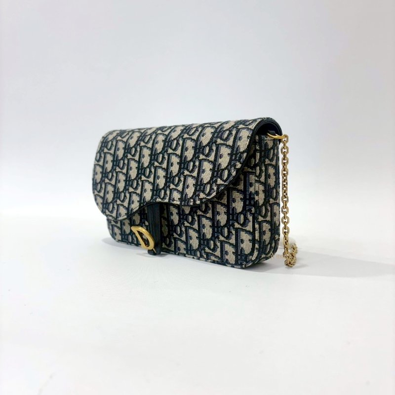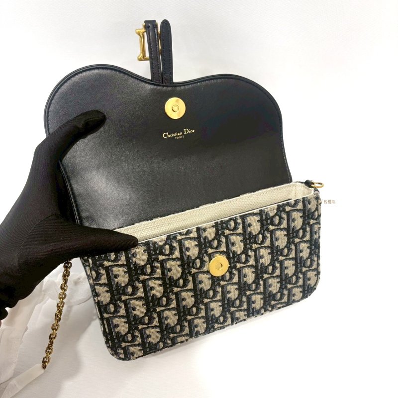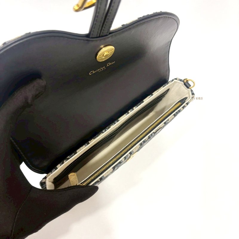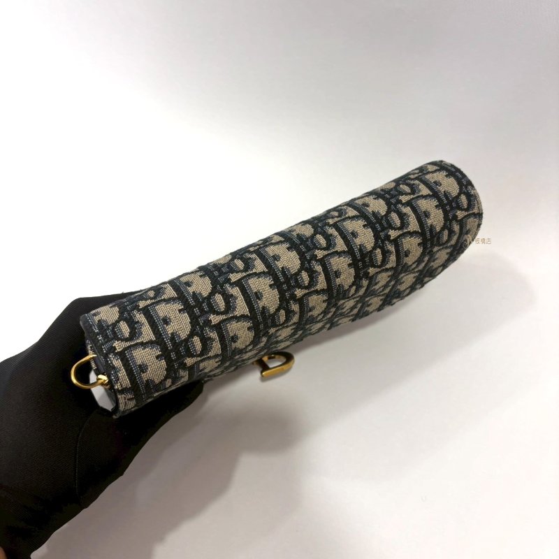 DIOR Saddle 中型藍色Dior Oblique緹花WOC鍊包-0