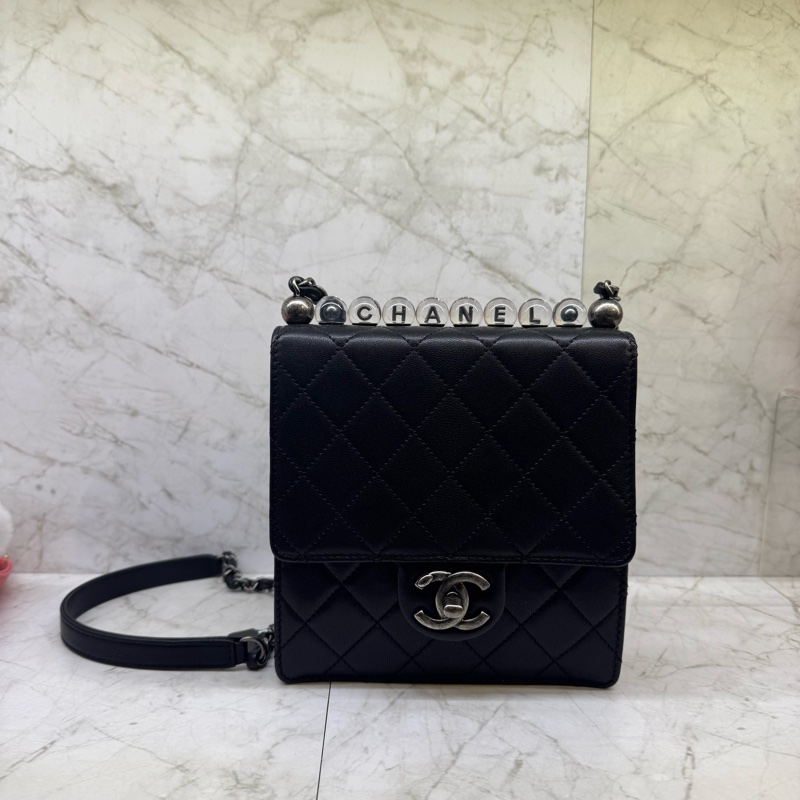 CHANEL黑銀樹酯透明珍珠翻蓋包/29