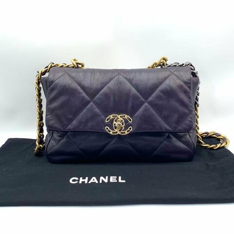CHANEL19 Large Handbag 深紫色山羊皮19bag