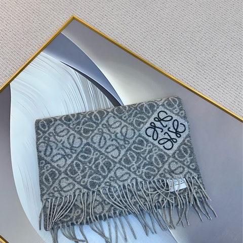 【全❤️】LOEWE Anagram scarf羊絨羊毛刺繡 圍巾頸巾女款 淺灰色 灰色