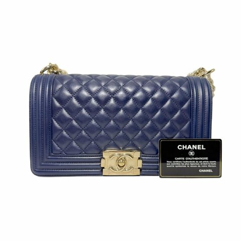 [2355]香奈兒 Chanel LEBOY 深藍色 羊皮 中號