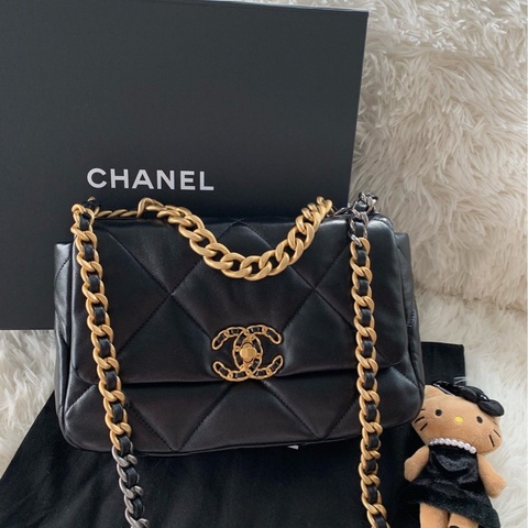 CHANEL(香奈兒) 19BAG 口蓋包 中號 30cm 黑色 30開 金扣