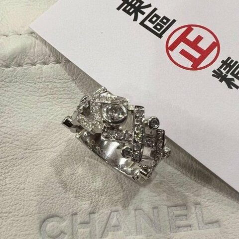 東區正精品㊣Chanel Hugs & Kisses Diamond White Gold Cocktai 近全新18K白K鑽戒戒指 50號 RZ5754