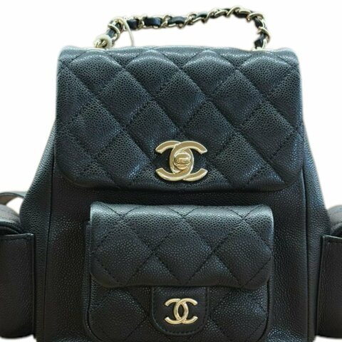 黑色 菱格紋 牛皮 Duma Drawstring 後背包 銀扣【CHANEL 香奈兒】 AS2908