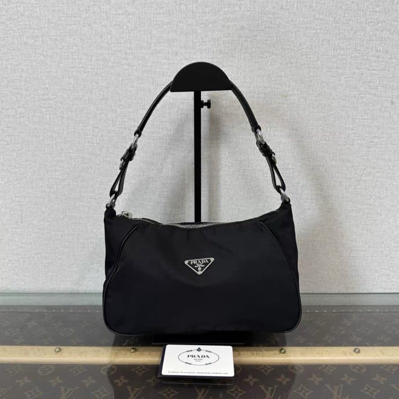 PRADA 黑銀降落傘肩背hobo手提腋下包 26*15*9 新98配件保卡