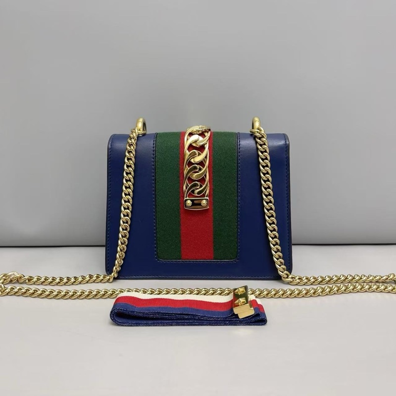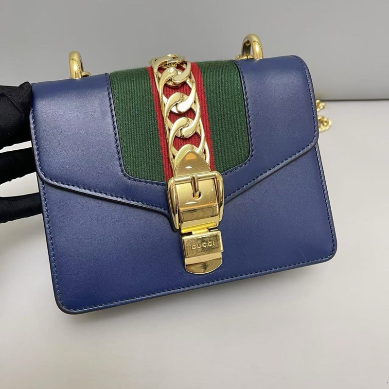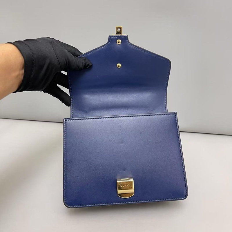 Gucci古馳 Sylvie小號藍色全皮塞爾維亞