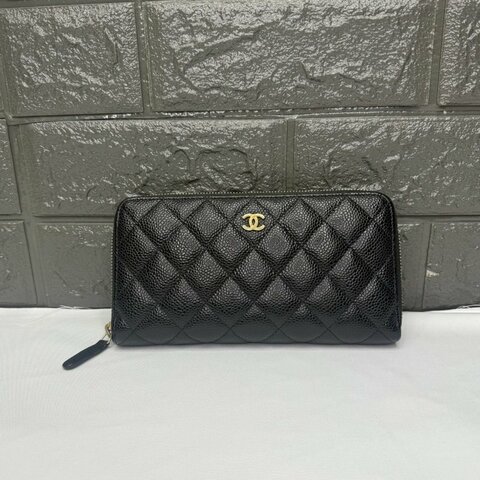 #99新閒置 #配件齊全 #荔枝皮 香奈兒黑金拉鍊長夾荔枝牛皮
