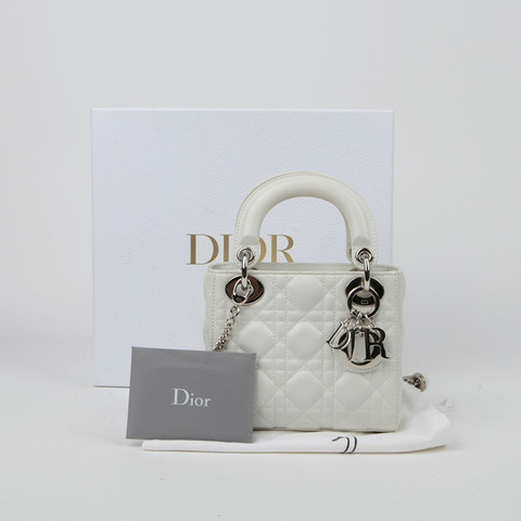 Dior 牛皮皮革Lady Dior銀扣肩背袋