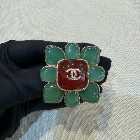 Chanel 16C 紅綠色琉璃寶石胸針