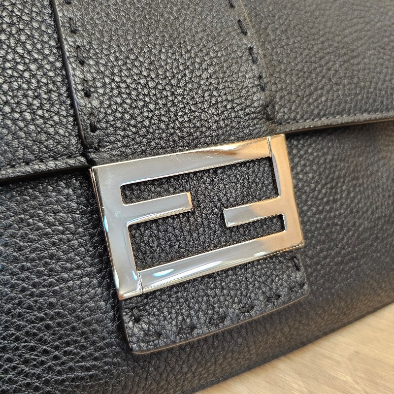 [少見絕版品❣️] Fendi Baguette 黑牛皮銀釦斜背包-4
