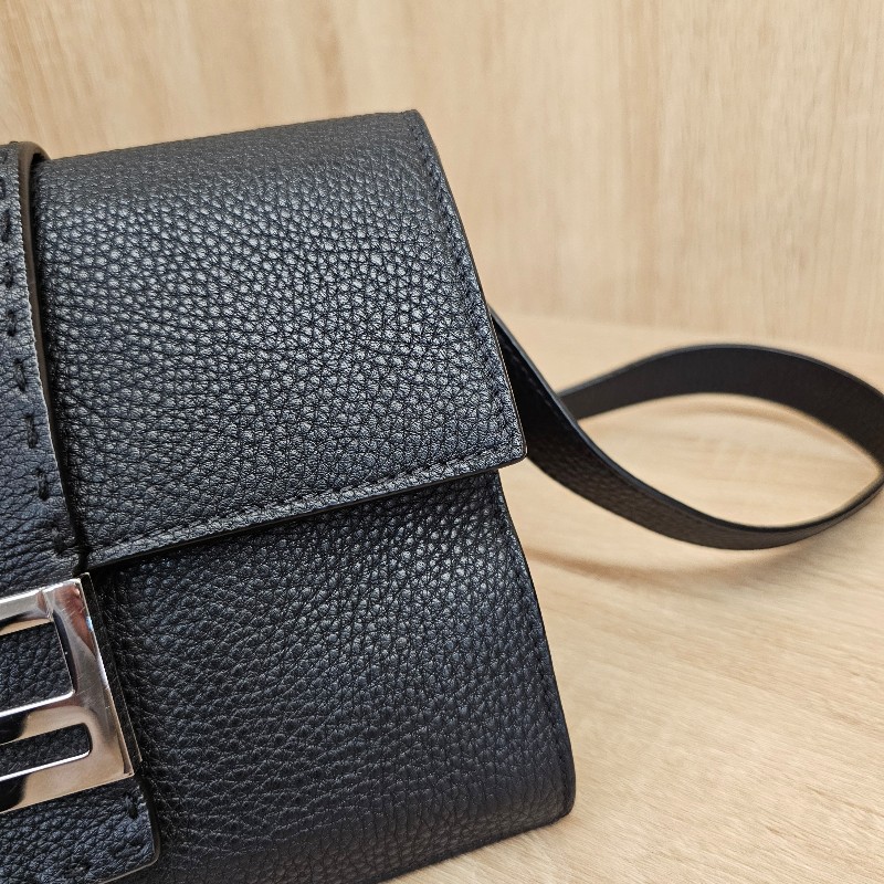 [少見絕版品❣️] Fendi Baguette 黑牛皮銀釦斜背包-1
