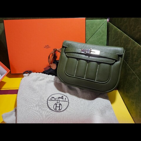 hermes C9小雞黃銀扣berline mini斜背包 20*16*6cm 98新 配件塵袋