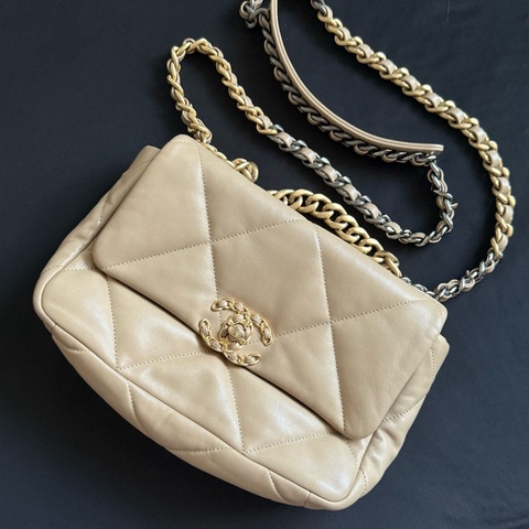 Chanel 19bag 奶茶金扣中號