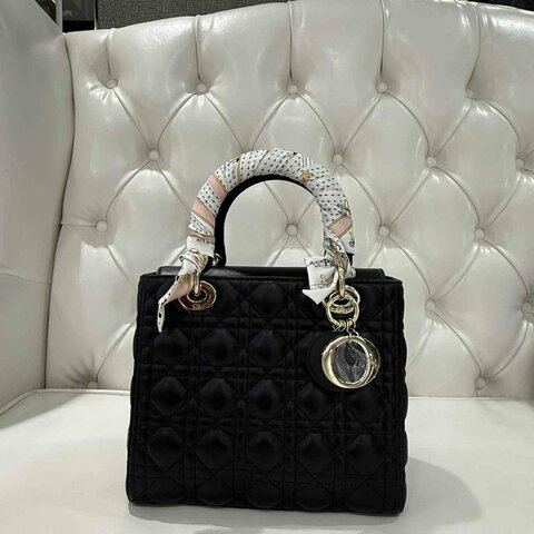 Dior-5X5格洋皮黛妃包 黑色+單條TWILLY