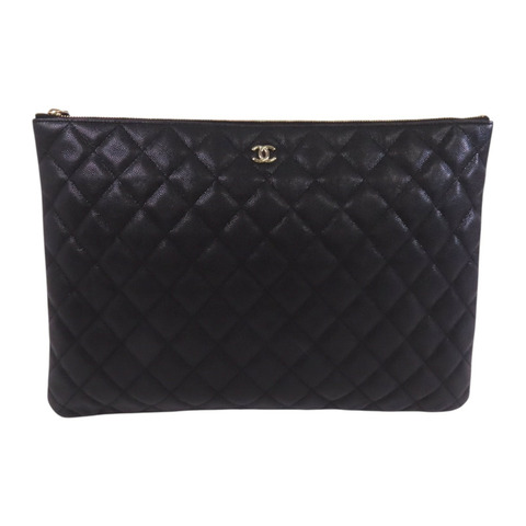CHANEL 牛皮皮革Pouch銀扣手拿包