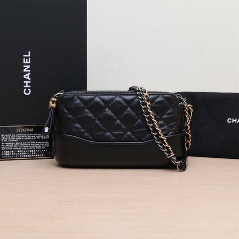 CHANEL GABRIELLE流浪WOC拉鏈版19黑色牛皮26開銀扣肩背包